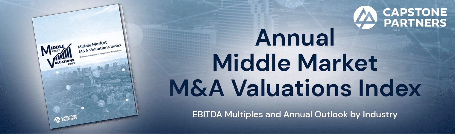 Capstone Partners’ annual Middle Market M&A Valuations Index examines EBITDA purchase multiples for middle market businesses. Leveraging market research and Capstone’s proprietary data, we seek to provide business owners and market participants greater transparency into the pricing dynamics of completed middle market merger and acquisition (M&A) sale processes.