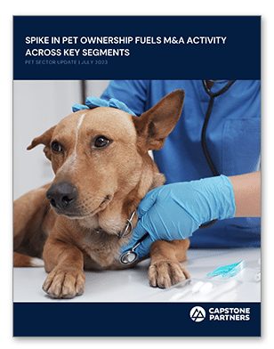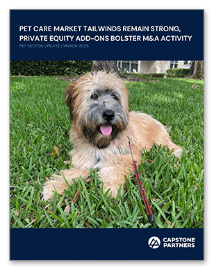 Capstone Partners’ Consumer Investment Banking Team provides M&A, capital formation, and financial advisory services to the owners of middle market businesses in the consumer and retail industries. Our team partners with leading mid-to-large sized Pet Care businesses that serve growing end-markets. For more information on the Pet Care market trends featured in this report or to speak with one of our Consumer Investment Banking Team members about how to grow, value, and/or sell your company, contact us today to start a conversation.